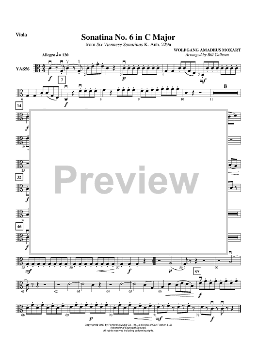 Digital Sheet Music for Sonatina No.6 In C Major - Viola by Wolfgang Amadeus Mozart, Bill Calhoun scored for Orchestra; id:406877