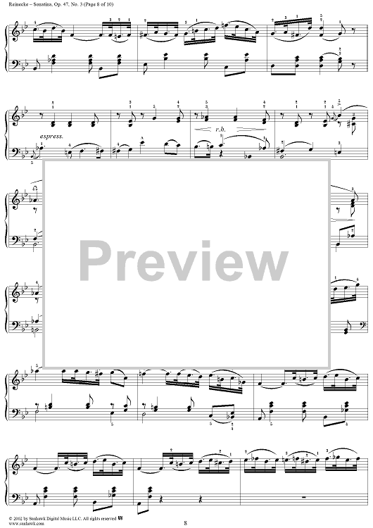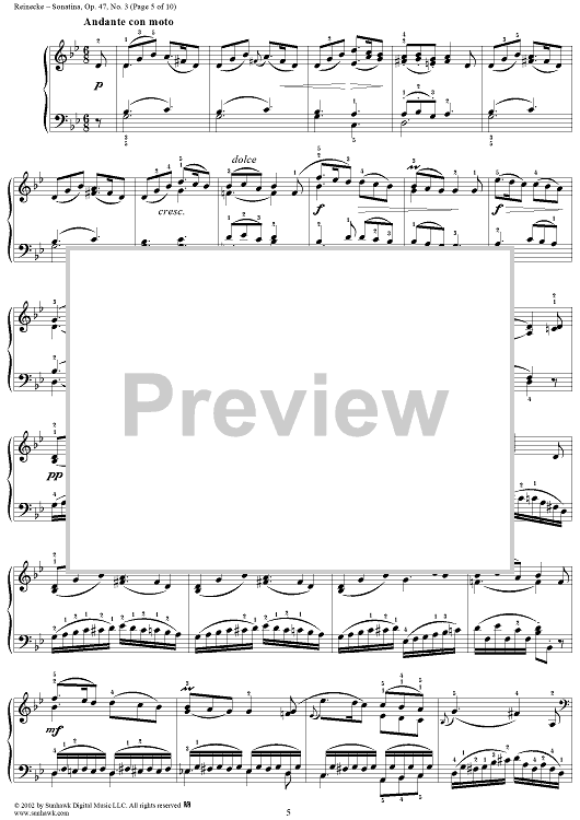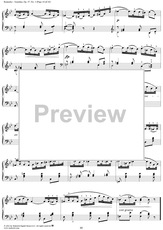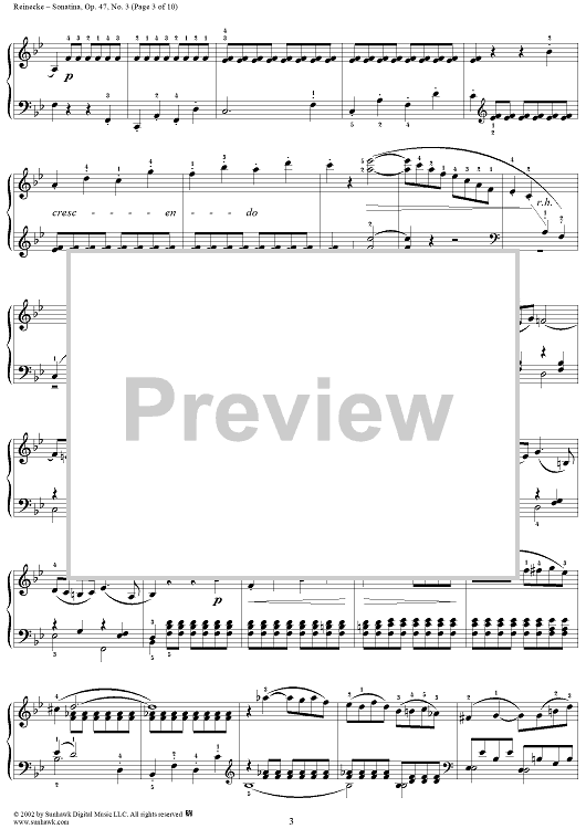 Digital Sheet Music for Sonatina, Op 47, No 3 by Carl Reinecke scored for Piano Solo; id:253337