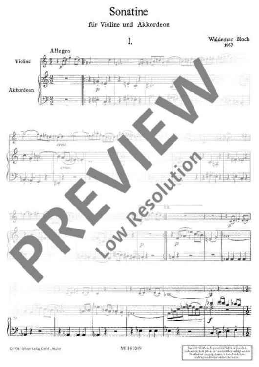 Digital Sheet Music for Sonatina by Waldemar Bloch scored for Violin And Accordion; id:475925