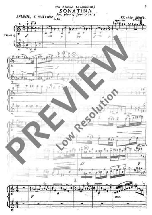Digital Sheet Music for Sonatina by Richard Arnell scored for Piano (4 Hands); id:476730