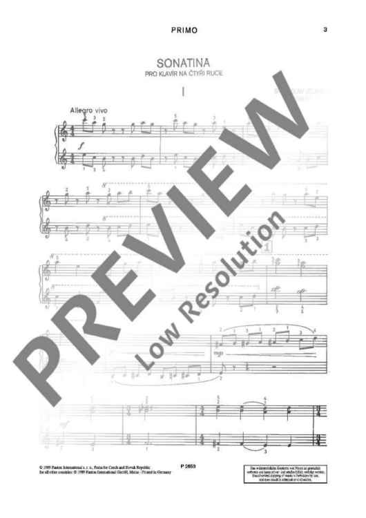 Digital Sheet Music for Sonatina by Stanislav Jelinek scored for Piano (4 Hands); id:494704