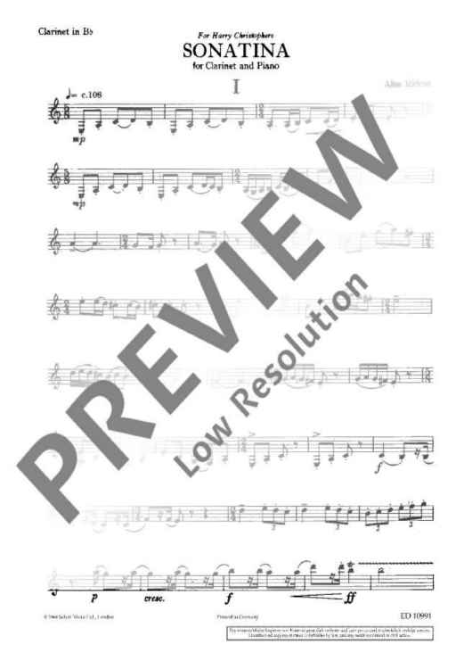 Digital Sheet Music for Sonatine by Alan Ridout scored for Clarinet And Piano; id:474316