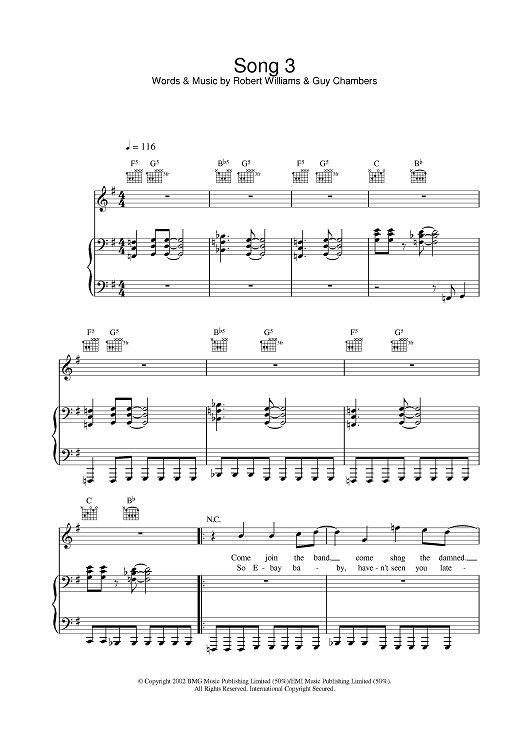 Digital Sheet Music for Song 3 by Robbie Williams, Guy Chambers scored for Piano/Vocal/Chords; id:377832
