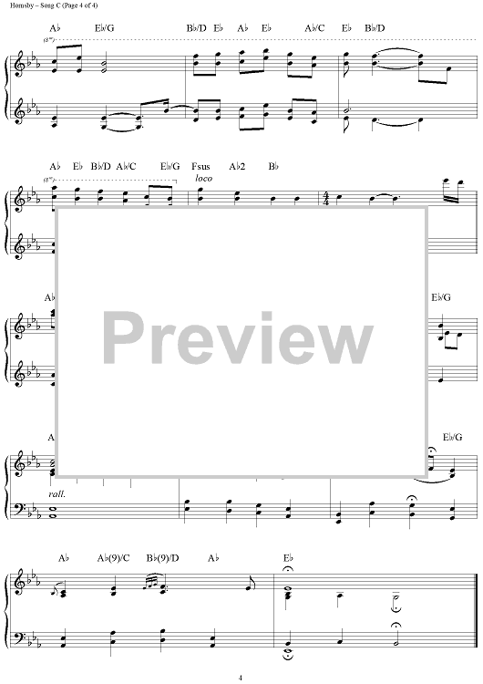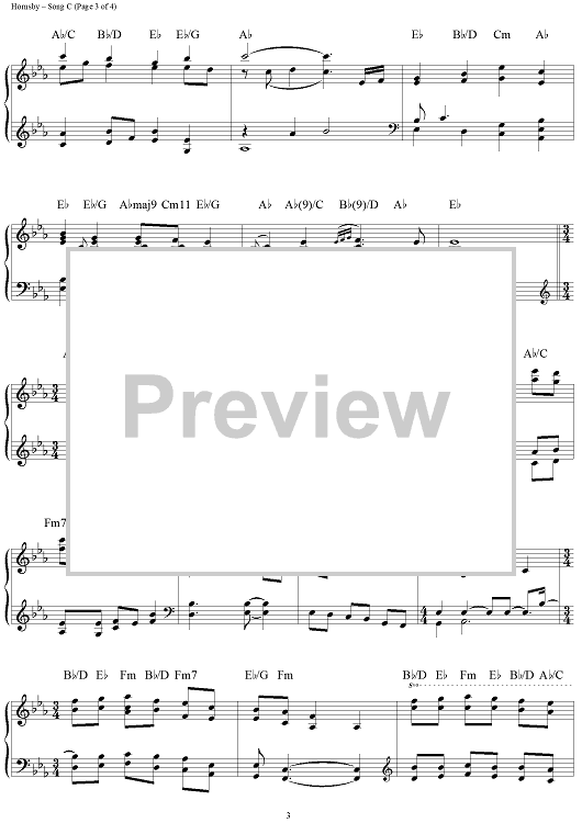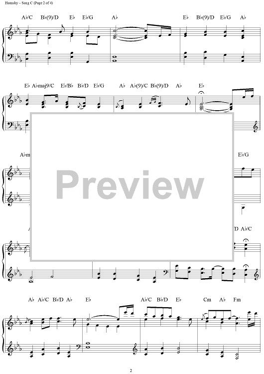 Digital Sheet Music for Song C by Bruce Hornsby scored for Piano Solo; id:187722
