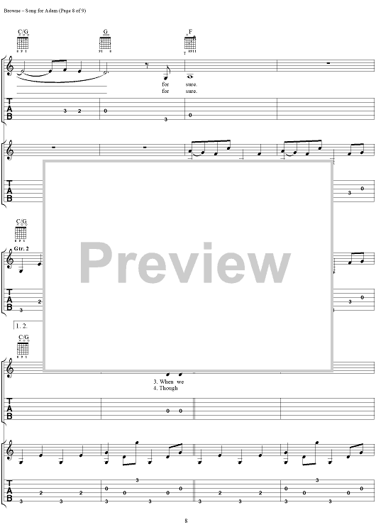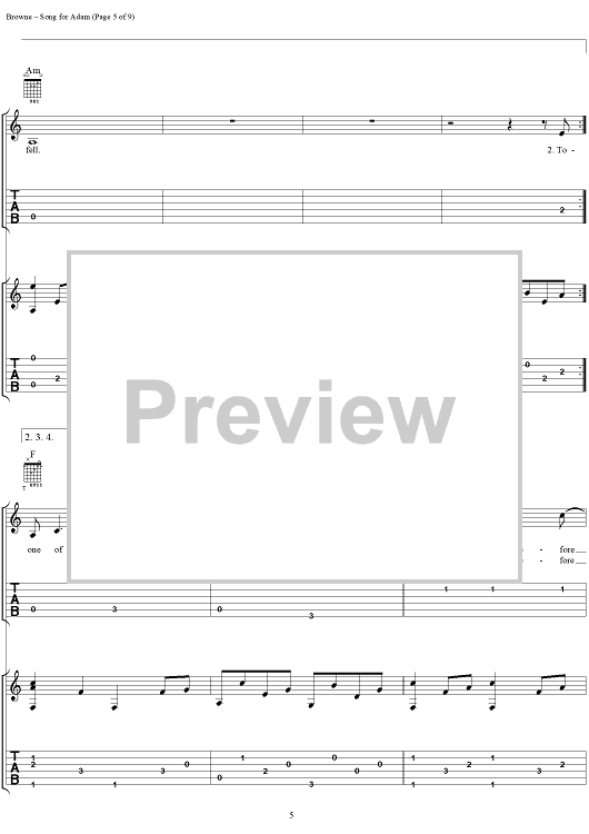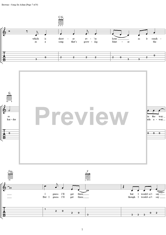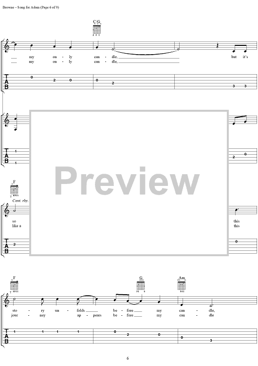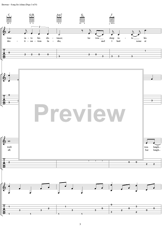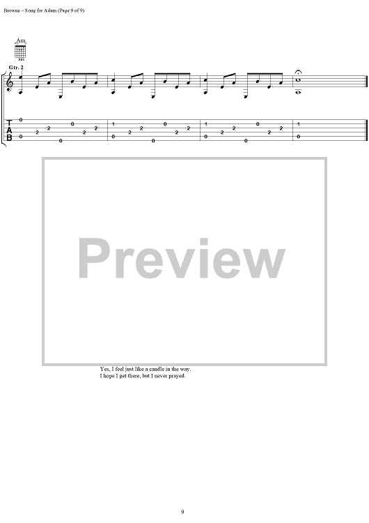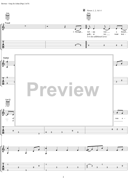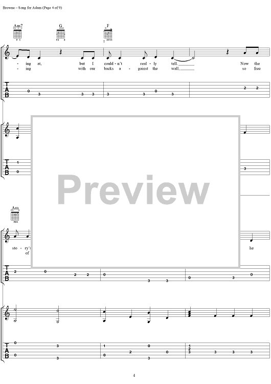 Digital Sheet Music for Song For Adam by Jackson Browne scored for Easy Guitar Tab/Vocal; id:241632