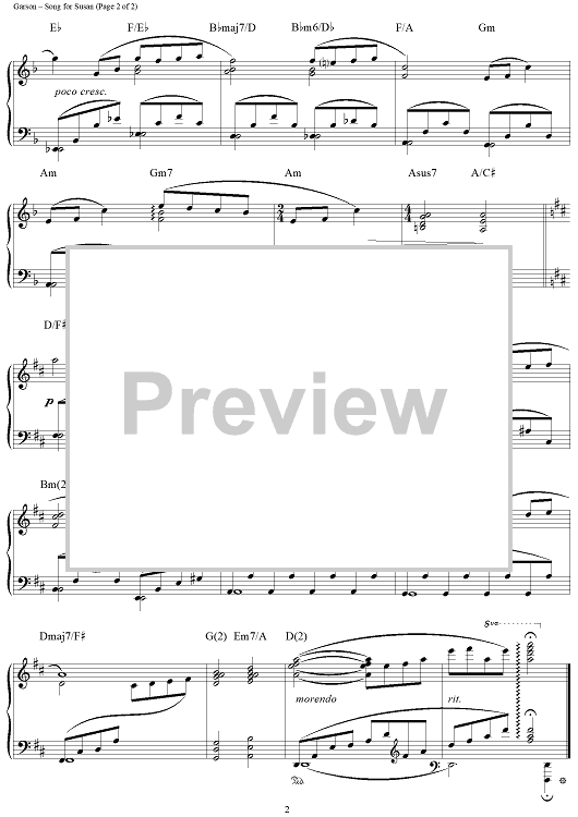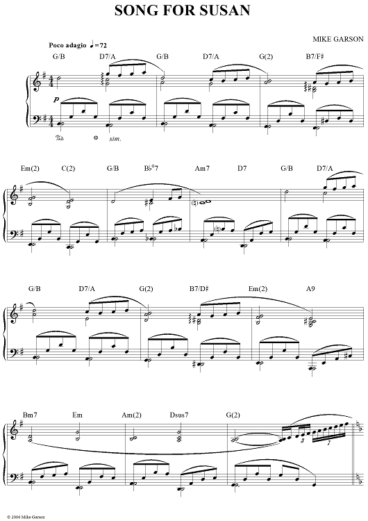 Digital Sheet Music for Song for Susan by Mike Garson scored for Piano Solo; id:361917