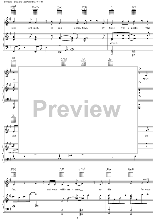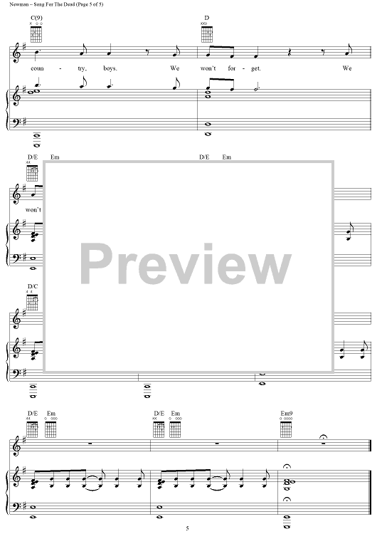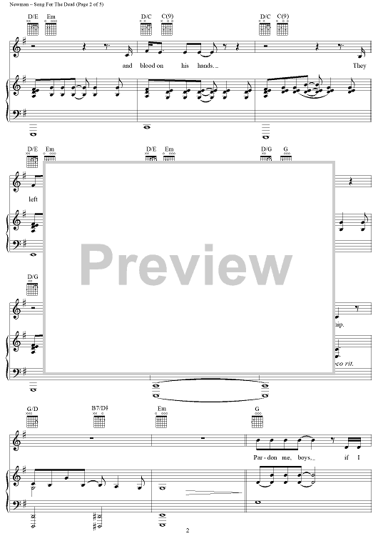 Digital Sheet Music for Song For the Dead by Randy Newman scored for Piano/Vocal/Chords; id:253417