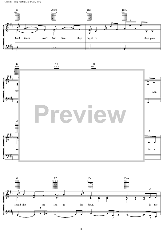 Digital Sheet Music for Song For the Life by Rodney Crowell, Al Jackson Jr scored for Piano/Vocal/Chords; id:272052