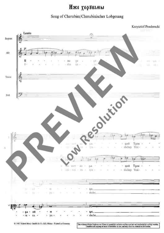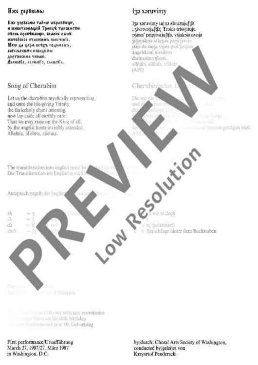"Song of Cherubin - Iže cheruvimi - Choral Score" Sheet Music by Krzysztof Penderecki