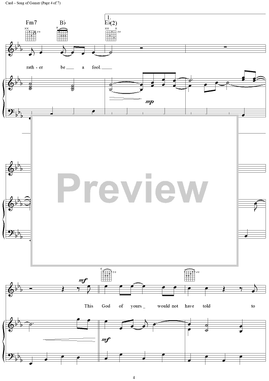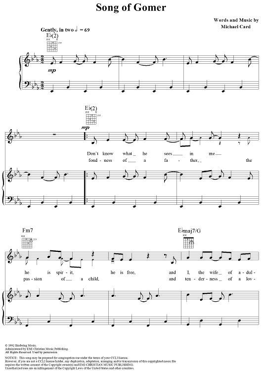 Digital Sheet Music for Song of Gomer by Michael Card scored for Piano/Vocal/Chords; id:132902