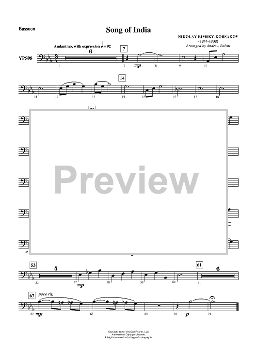 Digital Sheet Music for Song of India - Bassoon by Andrew Balent, Nikolai Rimsky-Korsakov scored for Concert Band; id:420816