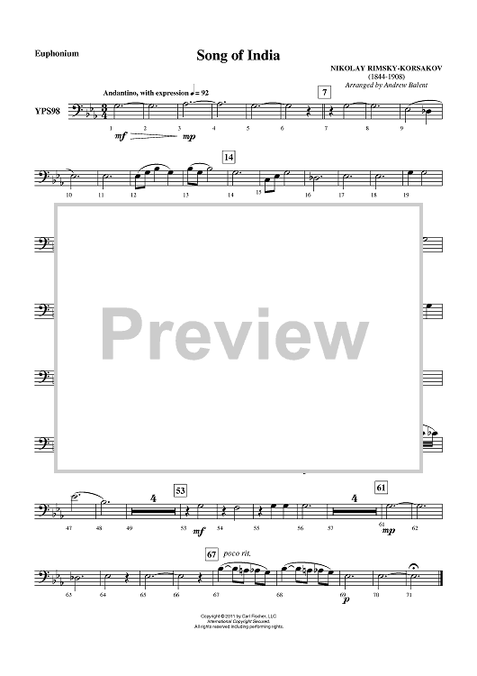Digital Sheet Music for Song of India - Euphonium BC by Andrew Balent, Nikolai Rimsky-Korsakov scored for Concert Band; id:420825
