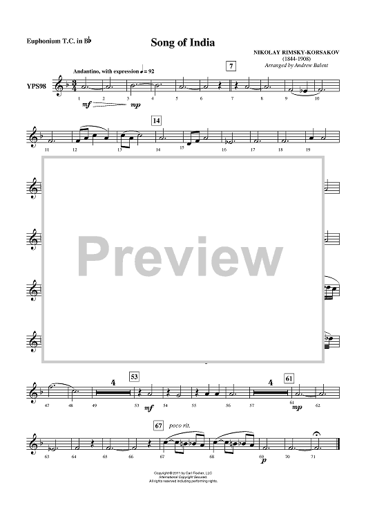 Digital Sheet Music for Song of India - Euphonium TC by Andrew Balent, Nikolai Rimsky-Korsakov scored for Concert Band; id:420824
