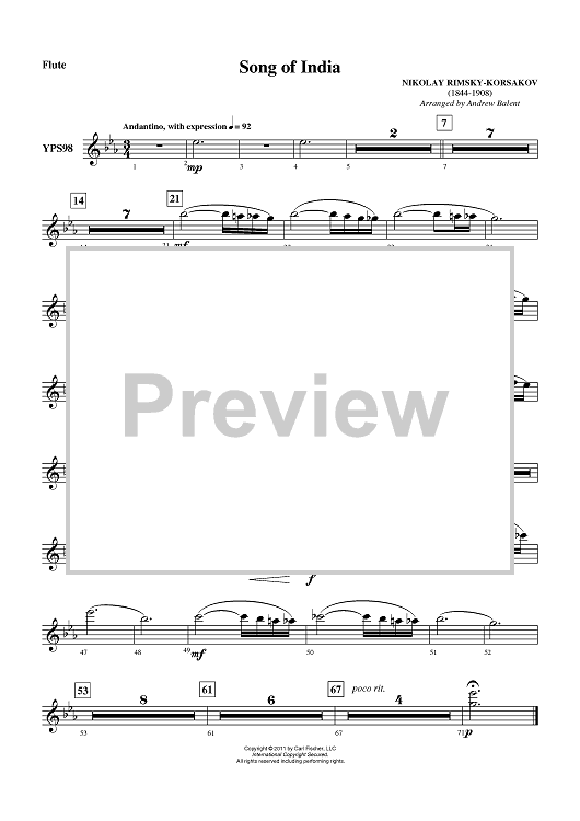 Digital Sheet Music for Song of India - Flute by Andrew Balent, Nikolai Rimsky-Korsakov scored for Concert Band; id:420811
