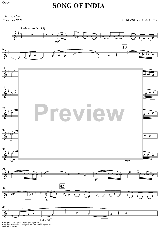 Digital Sheet Music for Song of India by Nikolai Rimsky-Korsakov, Blaine Edlefsen scored for Oboe/Piano; id:433898