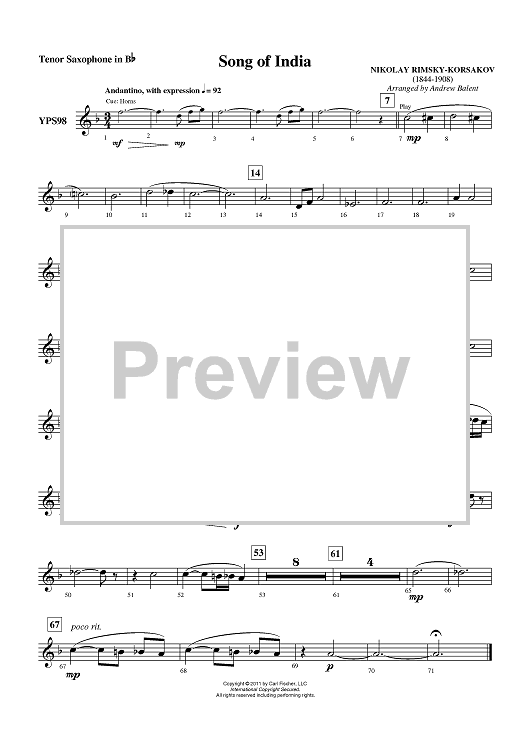 Digital Sheet Music for Song of India - Tenor Sax by Andrew Balent, Nikolai Rimsky-Korsakov scored for Concert Band; id:420818