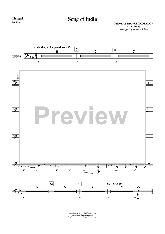 "Song of India - Timpani" Sheet Music by Nikolai Rimsky-Korsakov