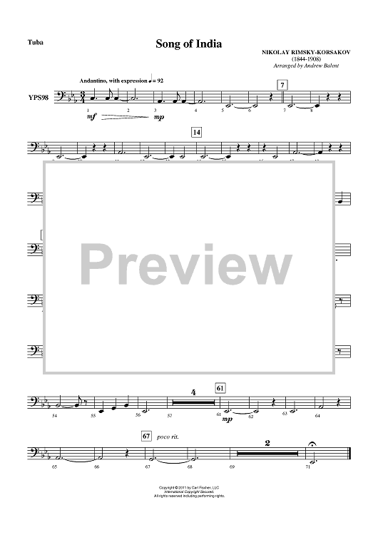 Digital Sheet Music for Song of India - Tuba by Andrew Balent, Nikolai Rimsky-Korsakov scored for Concert Band; id:420826