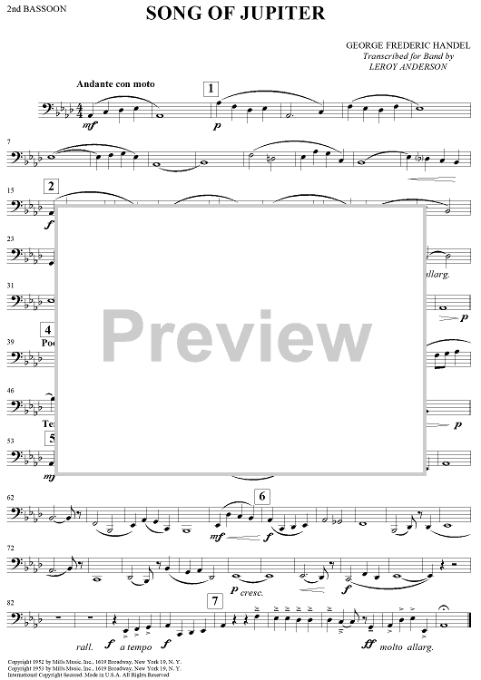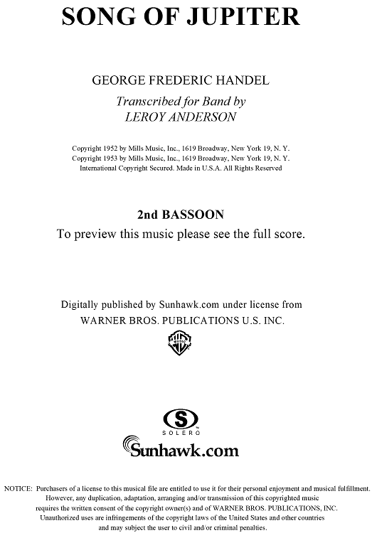 Digital Sheet Music for Song of Jupiter - Bassoon 2 by George Frideric Handel, Leroy Anderson scored for Concert Band; id:267311