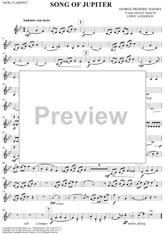 Digital Sheet Music for Song of Jupiter - Clarinet 3 by George Frideric Handel, Leroy Anderson scored for Concert Band; id:267374