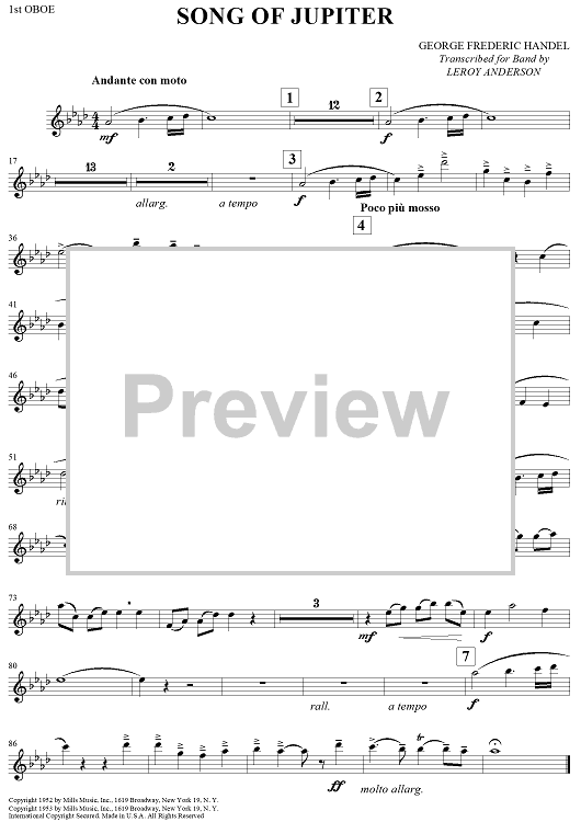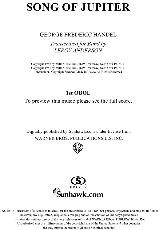 Digital Sheet Music for Song of Jupiter - Oboe 1 by George Frideric Handel, Leroy Anderson scored for Concert Band; id:267793