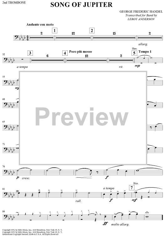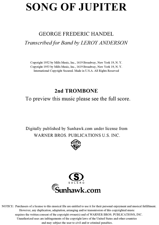 Digital Sheet Music for Song of Jupiter - Trombone 2 by George Frideric Handel, Leroy Anderson scored for Concert Band; id:267495