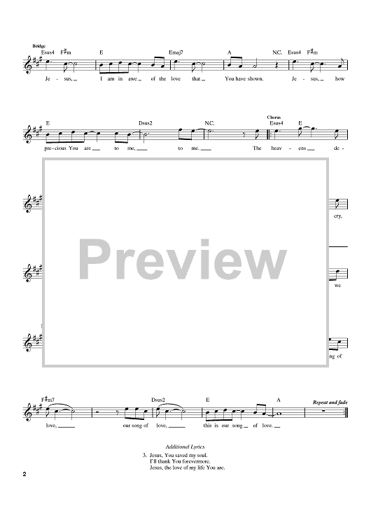 Digital Sheet Music for Song Of Love by Rebecca St. James, Matt Bronleewe, Jeremy Ash scored for Easy Guitar; id:398240