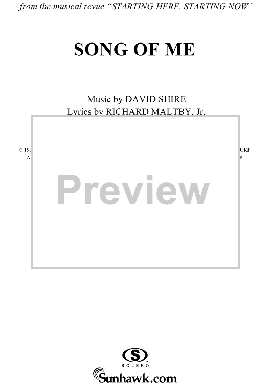 Digital Sheet Music for Song Of Me by David Shire, Richard Maltby Jr. scored for Piano/Vocal; id:257582