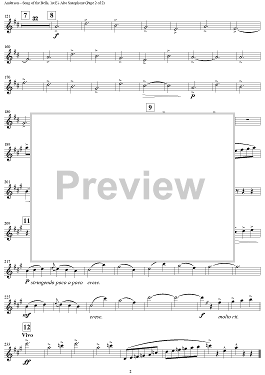 Digital Sheet Music for Song of the Bells - Alto Saxophone 1 by Leroy Anderson scored for Concert Band; id:277528