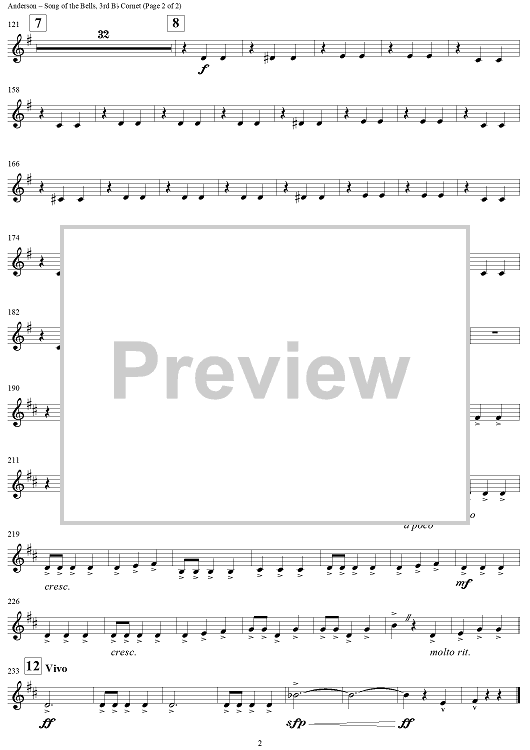 Digital Sheet Music for Song of the Bells - Cornet 3 by Leroy Anderson scored for Concert Band; id:277576