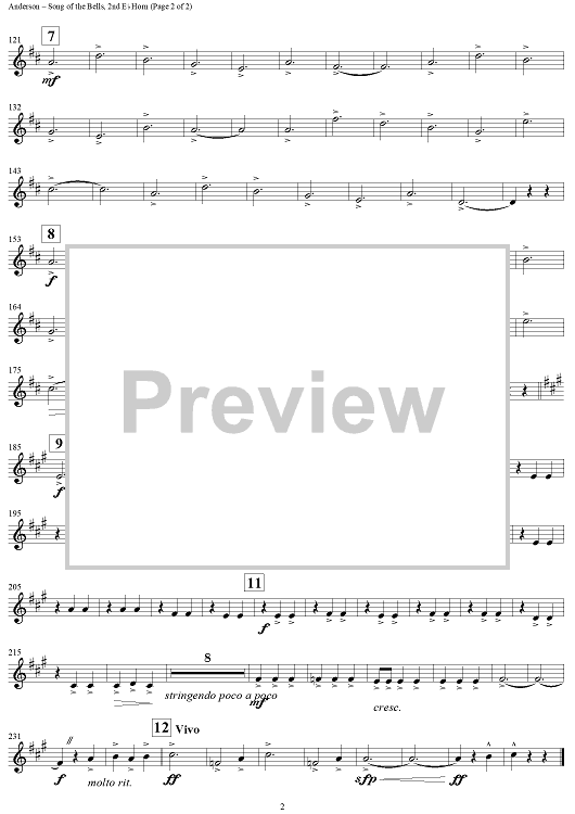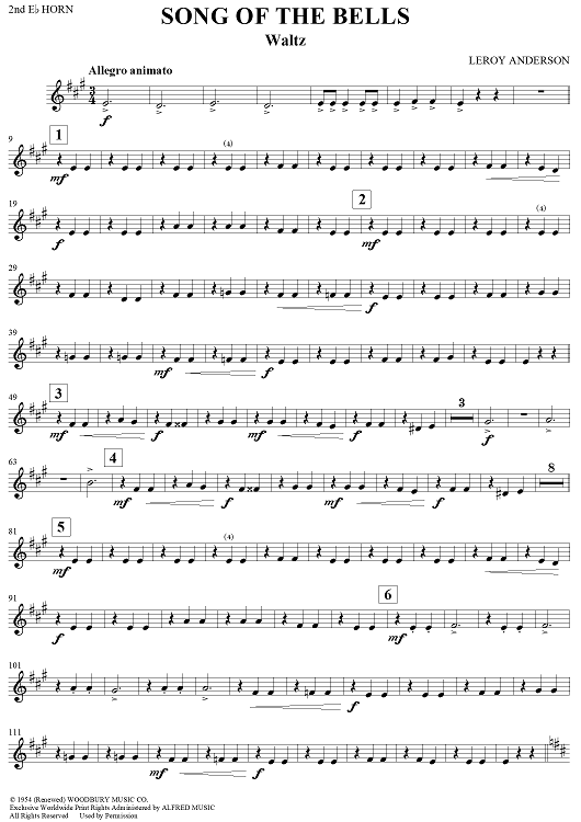 Digital Sheet Music for Song of the Bells - Horn in E-flat 2 by Leroy Anderson scored for Concert Band; id:277549