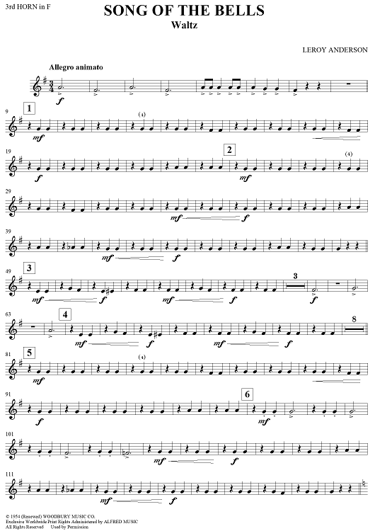 "Song of the Bells - Horn in F 3" Sheet Music by Leroy Anderson