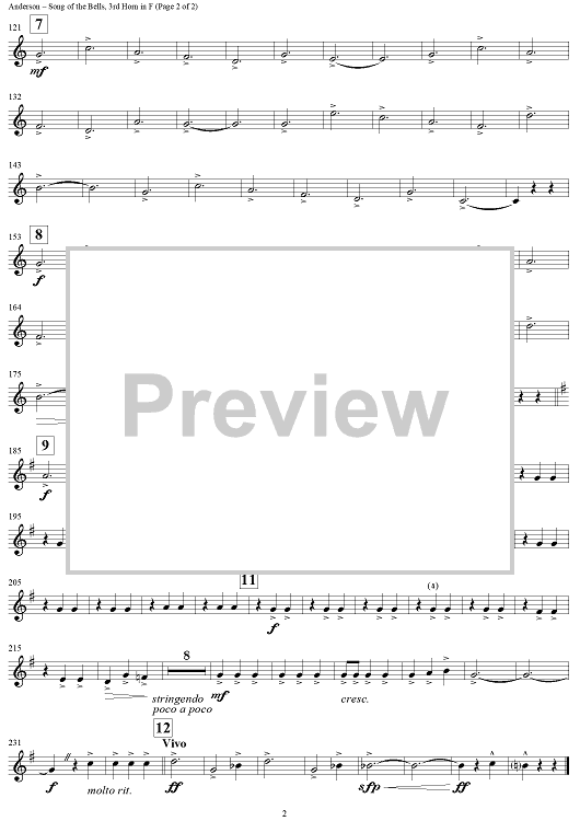 Digital Sheet Music for Song of the Bells - Horn in F 3 by Leroy Anderson scored for Concert Band; id:277557