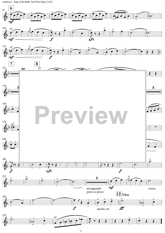Digital Sheet Music for Song of the Bells - Oboe 2 by Leroy Anderson scored for Concert Band; id:277572