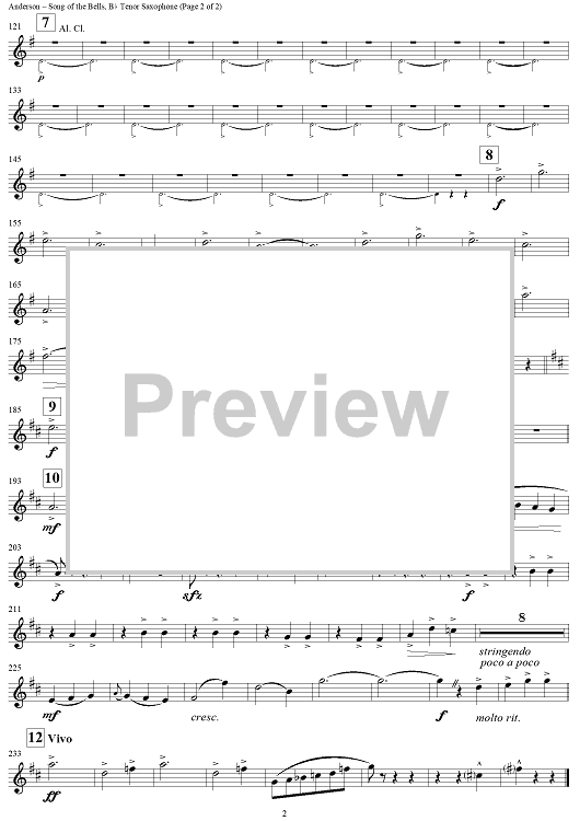 Digital Sheet Music for Song of the Bells - Tenor Saxophone by Leroy Anderson scored for Concert Band; id:277571