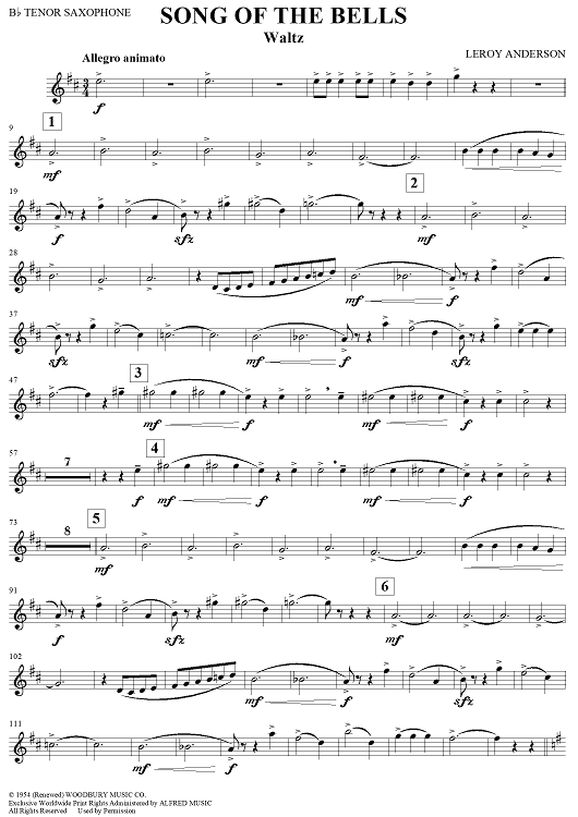 "Song of the Bells - Tenor Saxophone" Sheet Music by Leroy Anderson