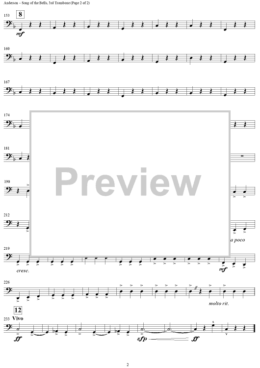 Digital Sheet Music for Song of the Bells - Trombone 3 by Leroy Anderson scored for Concert Band; id:277565