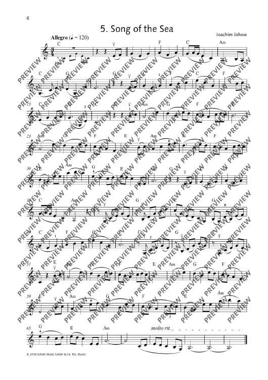 Digital Sheet Music for Song of the Sea by Joachim Johow scored for Violin And Piano; id:497371