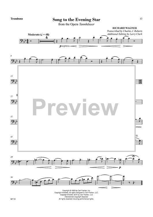 "Song to the Evening Star from the Opera Tannhäuser" Sheet Music by Richard Wagner
