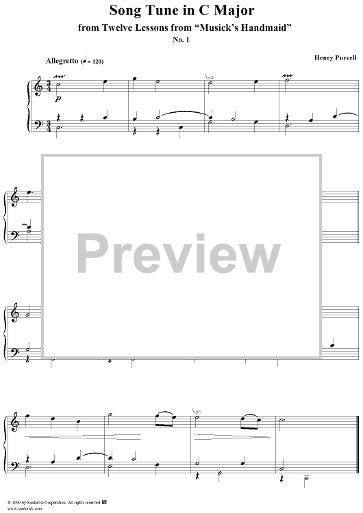 "Song Tune in C Major, I" Sheet Music by Henry Purcell