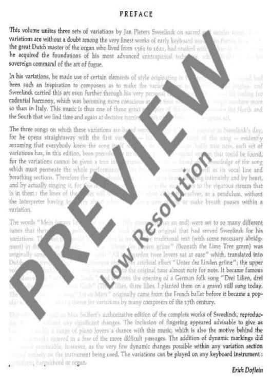 "Song Variations" Sheet Music by Jan Pieterszoon Sweelinck