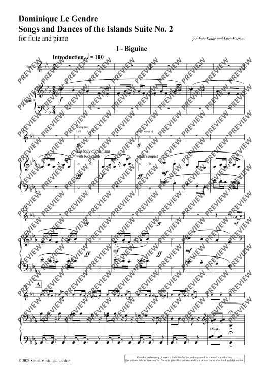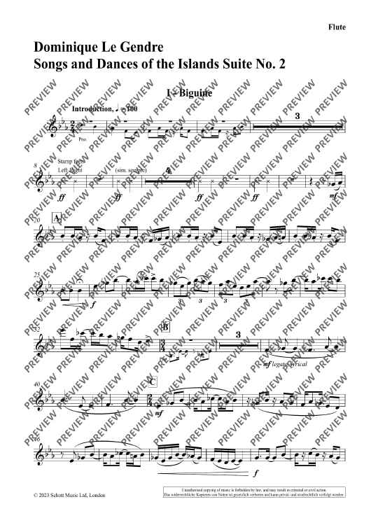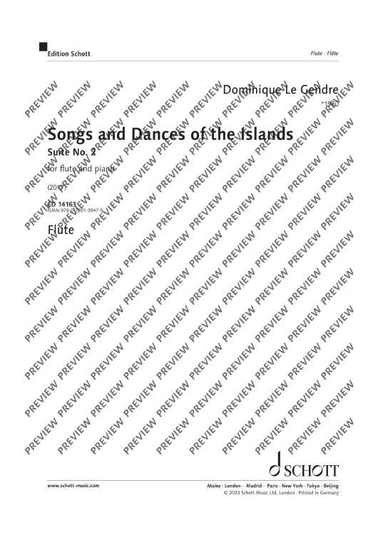 Digital Sheet Music for Songs and Dances of the Islands Suite No. 2 - Score and Parts by Dominique Le Gendre scored for Flute And Piano; id:501251