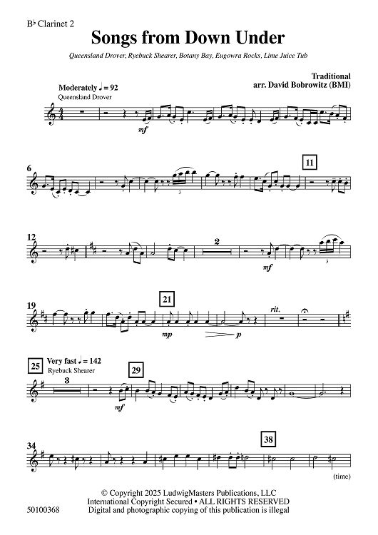 Digital Sheet Music for Songs from Down Under - Bb Clarinet 2 by Traditional, David Bobrowitz scored for Concert Band; id:509375