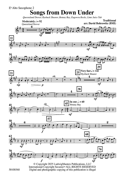 Digital Sheet Music for Songs from Down Under - Eb Alto Saxophone 2 by Traditional, David Bobrowitz scored for Concert Band; id:509379