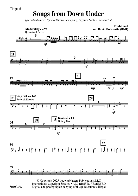 Digital Sheet Music for Songs from Down Under - Timpani by Traditional, David Bobrowitz scored for Concert Band; id:509393