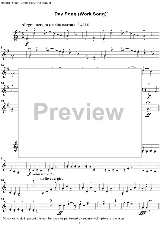"Songs of Day and Night. Suite for violin and piano - Violin" Sheet Music by Samuel Maykapar