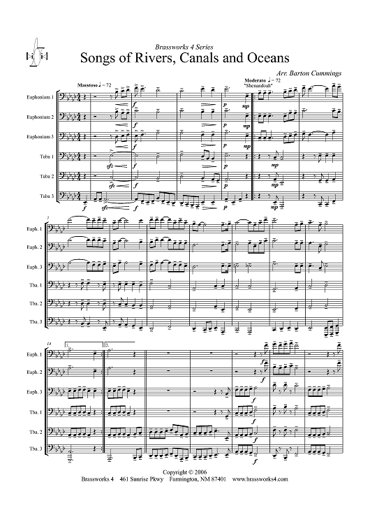 Digital Sheet Music for Songs of Rivers, Canals and Oceans - Score by Barton Cummings scored for Tuba/Euphonium Sextet; id:358231