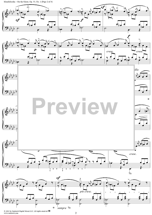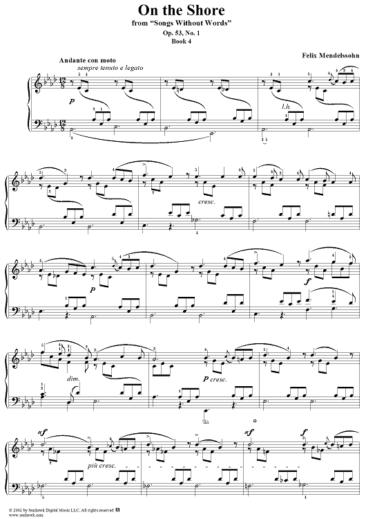 "Songs Without Words, bk. 4, op. 53, no. 1 ("On the Shore")" Sheet Music by Felix Mendelssohn