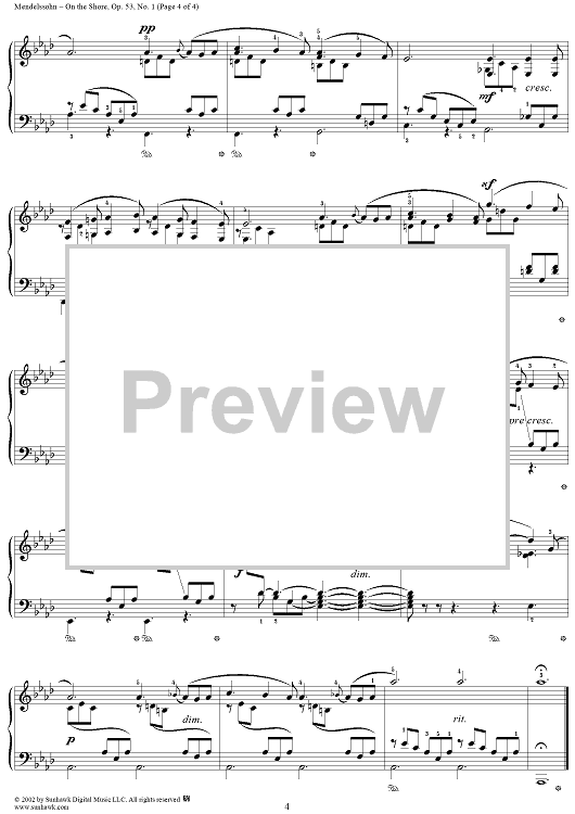 Digital Sheet Music for Songs Without Words, bk. 4, op. 53, no. 1 ("On the Shore") by Felix Mendelssohn scored for Piano Solo; id:259432