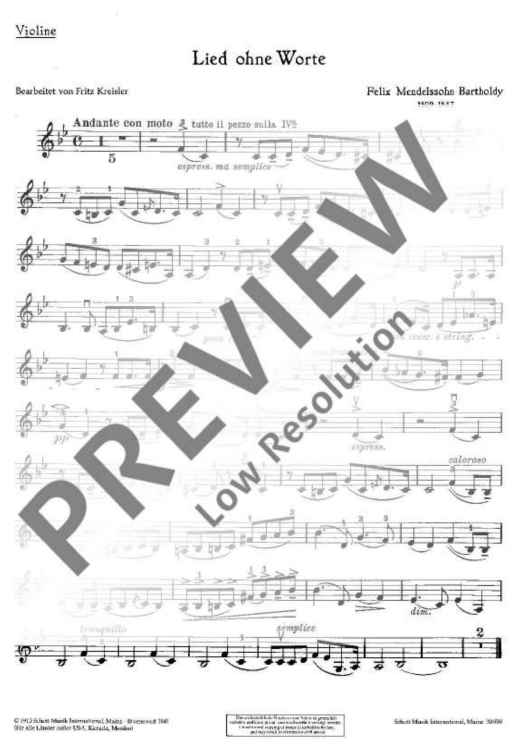 Digital Sheet Music for Songs without Words in B flat major by Fritz Kreisler, Felix Mendelssohn Bartholdy scored for Violin And Piano; id:471447
